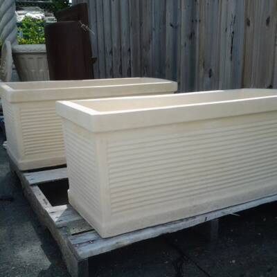 Clean line, modern design window boxes. Made in the USA specifically designed to withstand Florida’s hurricane season. These pots are extra heavy, but a great finish on any home.